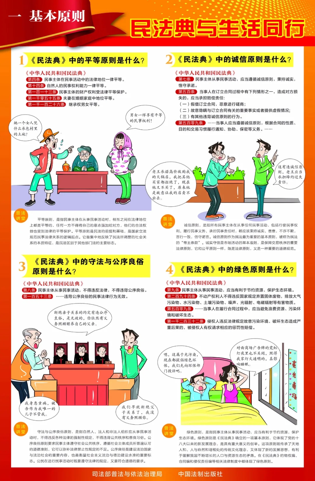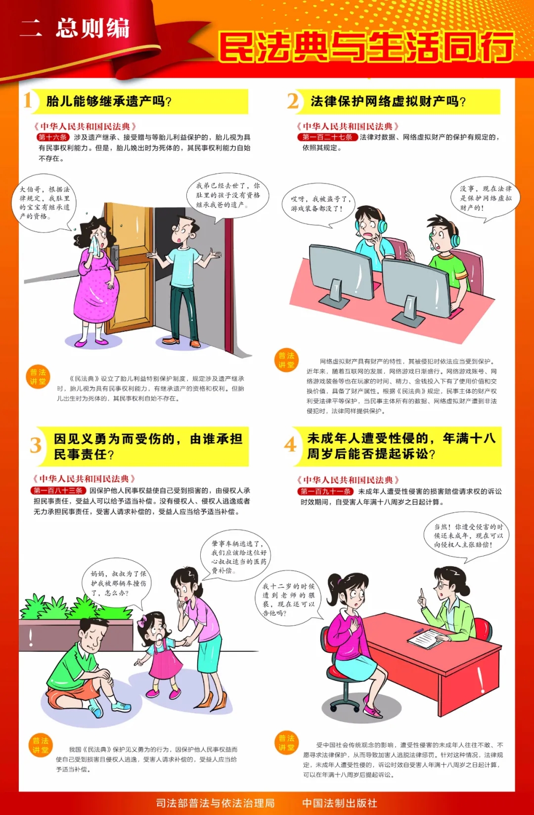為深入貫徹落實習近平總書記關于廣泛開展民法典普法工作的重要指示,司法部普法與依法治理局會同中國法制出版社編輯了《民法典與生活同行》系列掛圖(一套9張),如下: