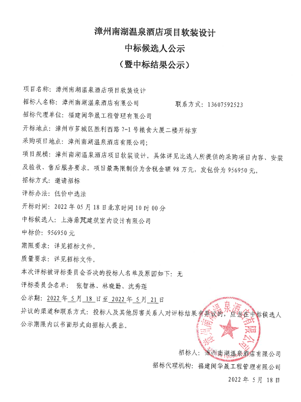 軟裝設(shè)計項目中標(biāo)結(jié)果公示