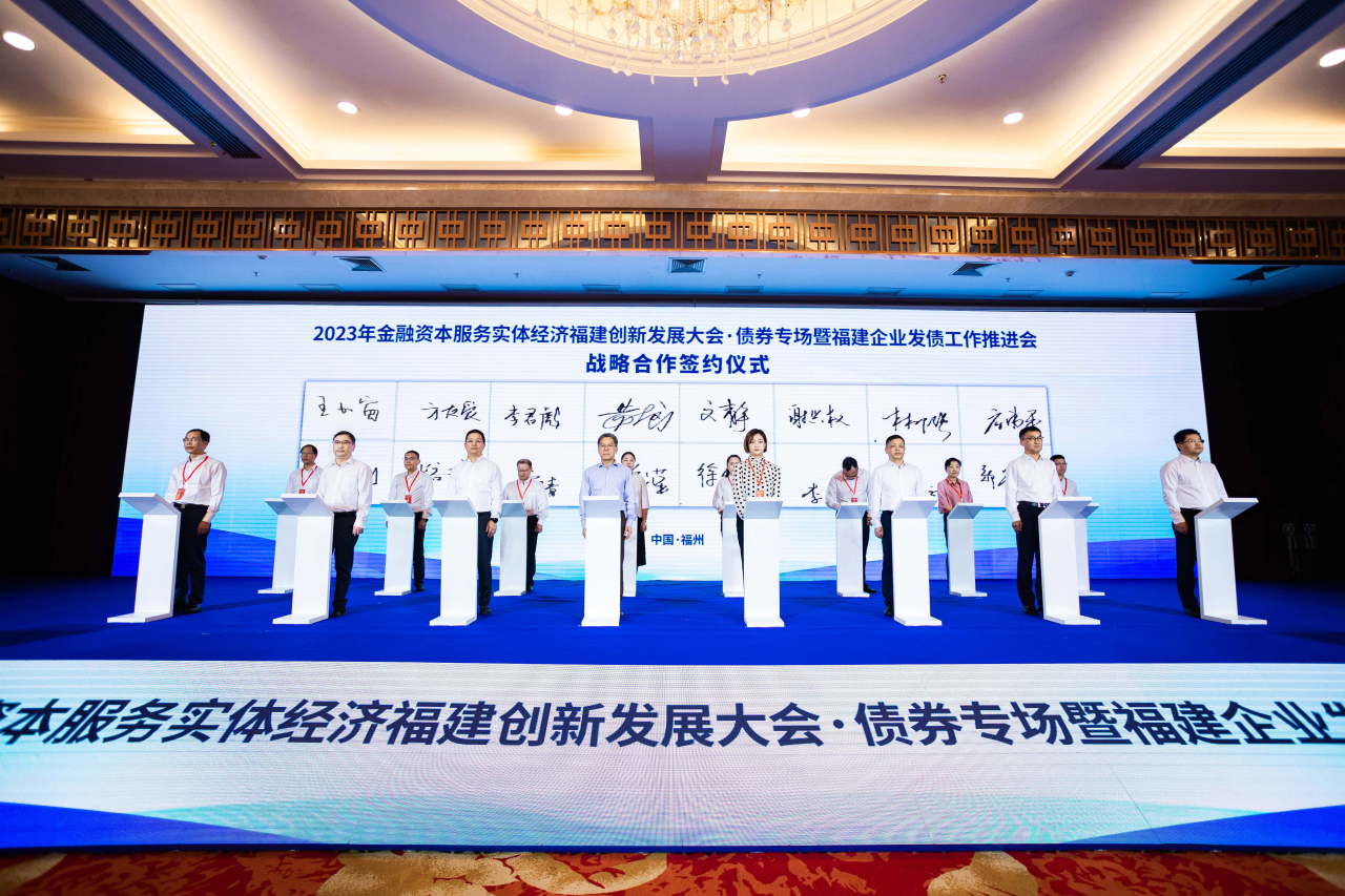 本次會議是2023年金融資本服務實體經濟福建創新發展大會的重要組成部分,由福建省地方金融監督管理局、中國人民銀行福建省分行指導,華福證券主辦。會上,九龍江集團黨委書記、董事長林柳強與華福證券黨委副書記、總裁黃德良共同簽署了債券發行協議。