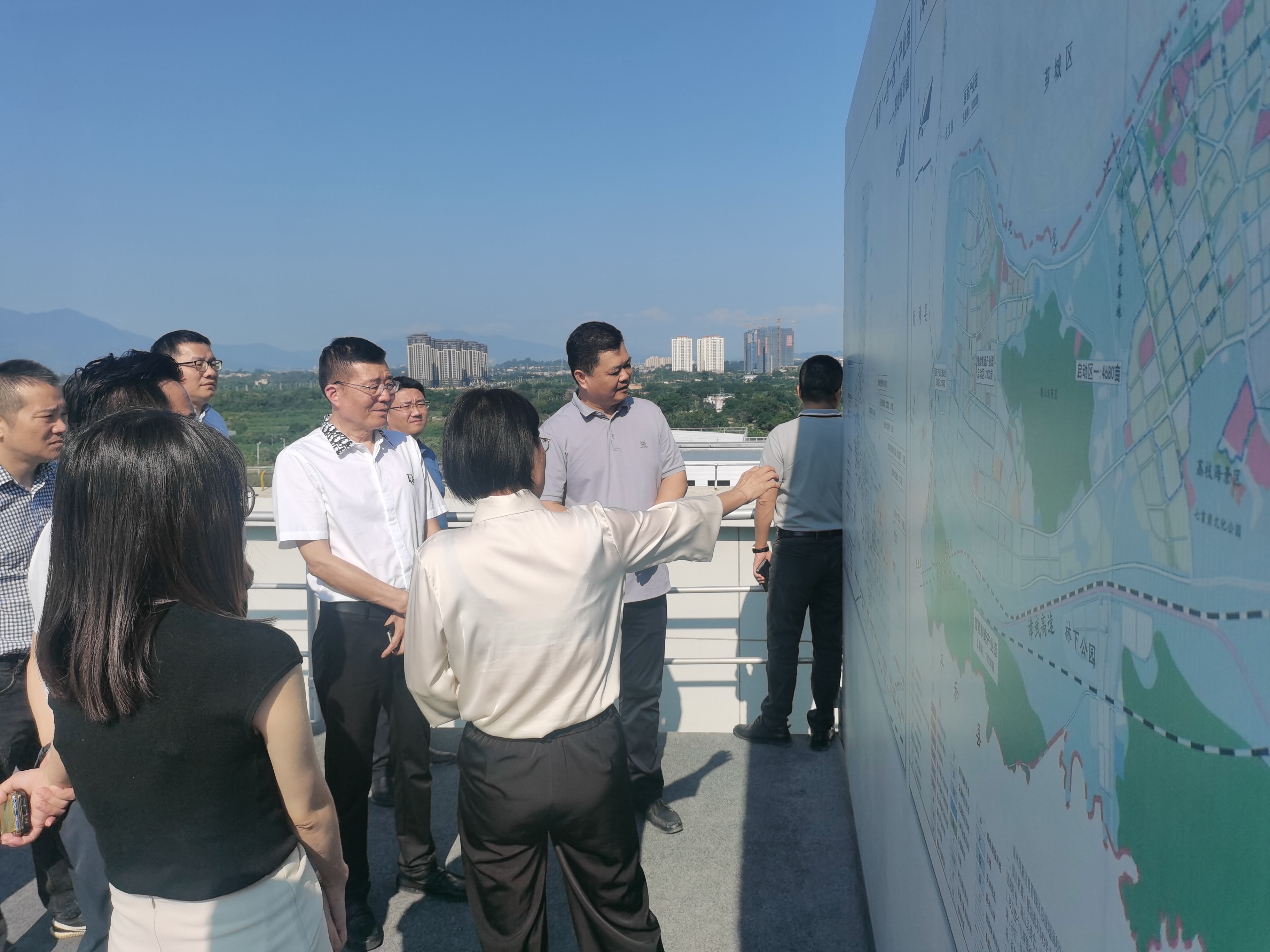 會后,賴文寧與劉洪湖、陳少欽一行前往高新區“一智一藥”片區實地考察,并在工業鄰里中心項目部舉行座談會。雙方表示將秉承合作共贏的理念,共同推動項目落地。