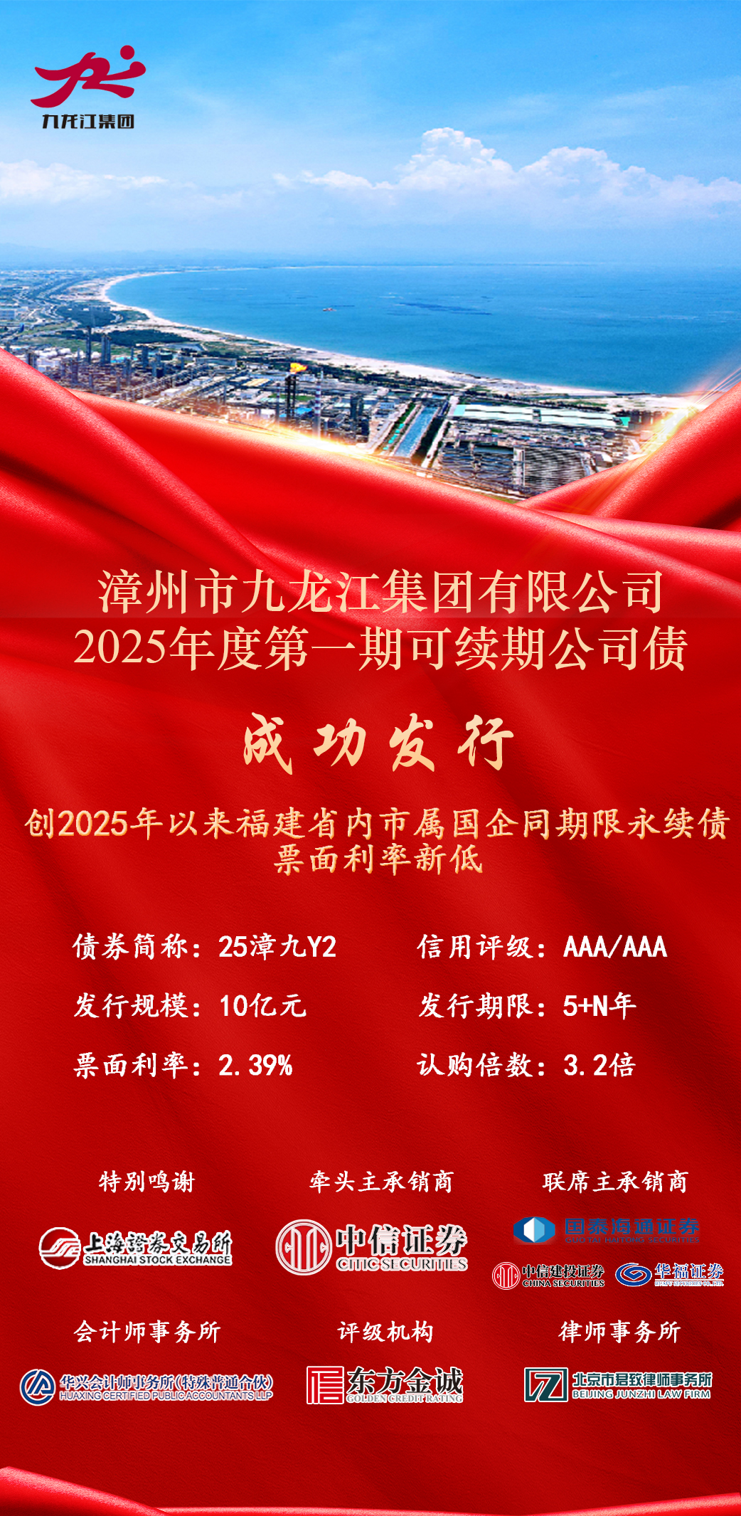 九龍江集團(tuán)發(fā)行2025年首單可續(xù)期公司債 創(chuàng)福建省內(nèi)市屬國企同期限永續(xù)債利率新低!